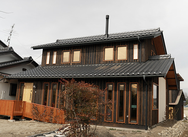木材は材木店で余った県産材を使用。外壁に使う木材は、表面を焼くことで耐火・防腐効果を高めています。